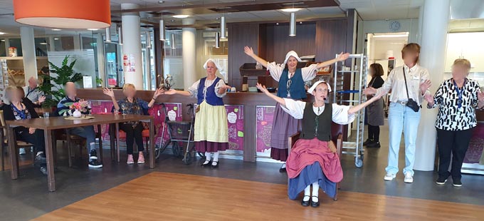 | We zijn meteen aan het begin van ons dansseizoen te gast in het zorgcentrum de Kasteelhoeve in Druten Aangezien het een middagprogramma was, zijn we er met een kleine groep heen gegaan. Met z'n zessen en Heleen voor de zitdansen en dat was precies genoeg om toch een leuk programma te kunnen bieden. |