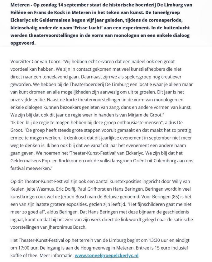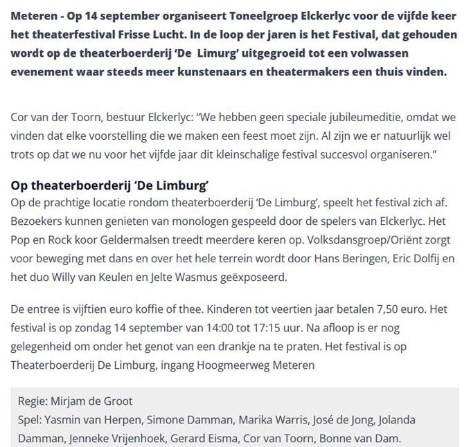 Buitenprogramma Theater- en Kunstfestival Frisse Lucht