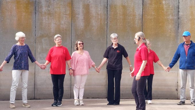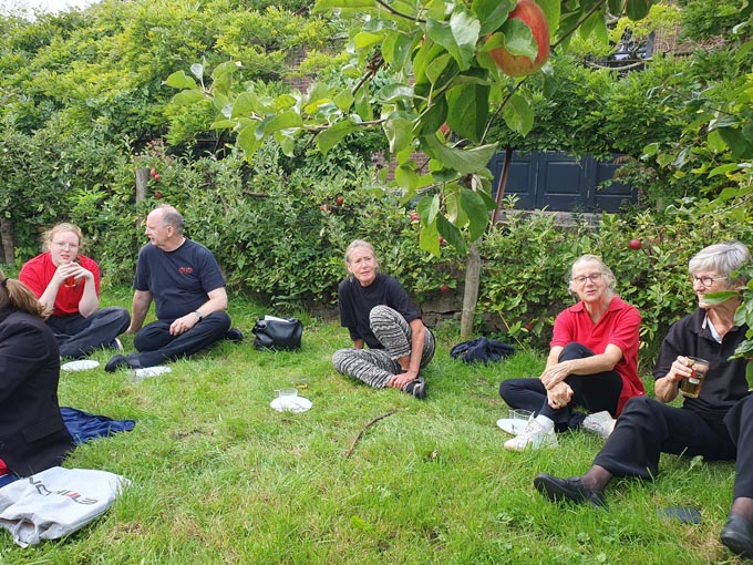 deze middag een workshop Werelddansen. Iedere keer een leuk aantal bezoekers dat een half uurtje met ons mee wil dansen. En verrassend.. ook een ruim aantal mannen doen mee! Heel gezellig en voor ons wel een heel aparte locatie om te dansen, in een enorme (gelukkig gerenoveerde) gierput! Het mooie weer werkte heel erg mee aan de fantastische sfeer deze middag. |