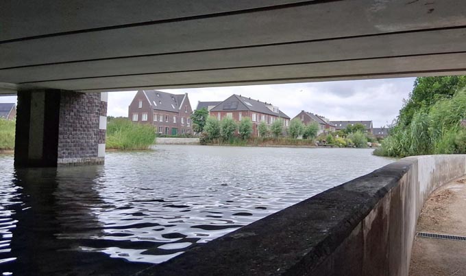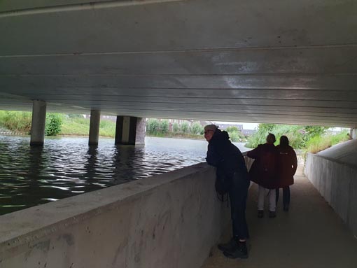 | Waar lopen we nu heen...een onderdoorgang en overal veel water en groen.... |